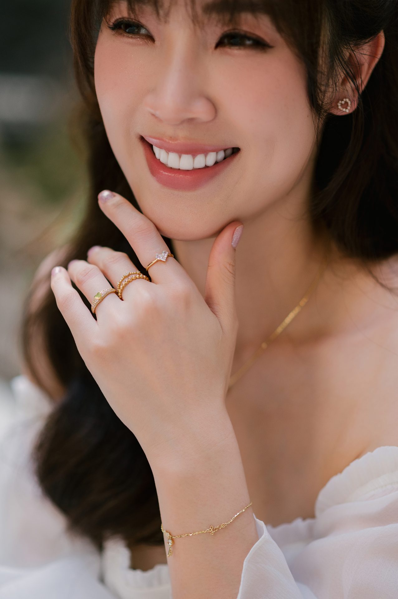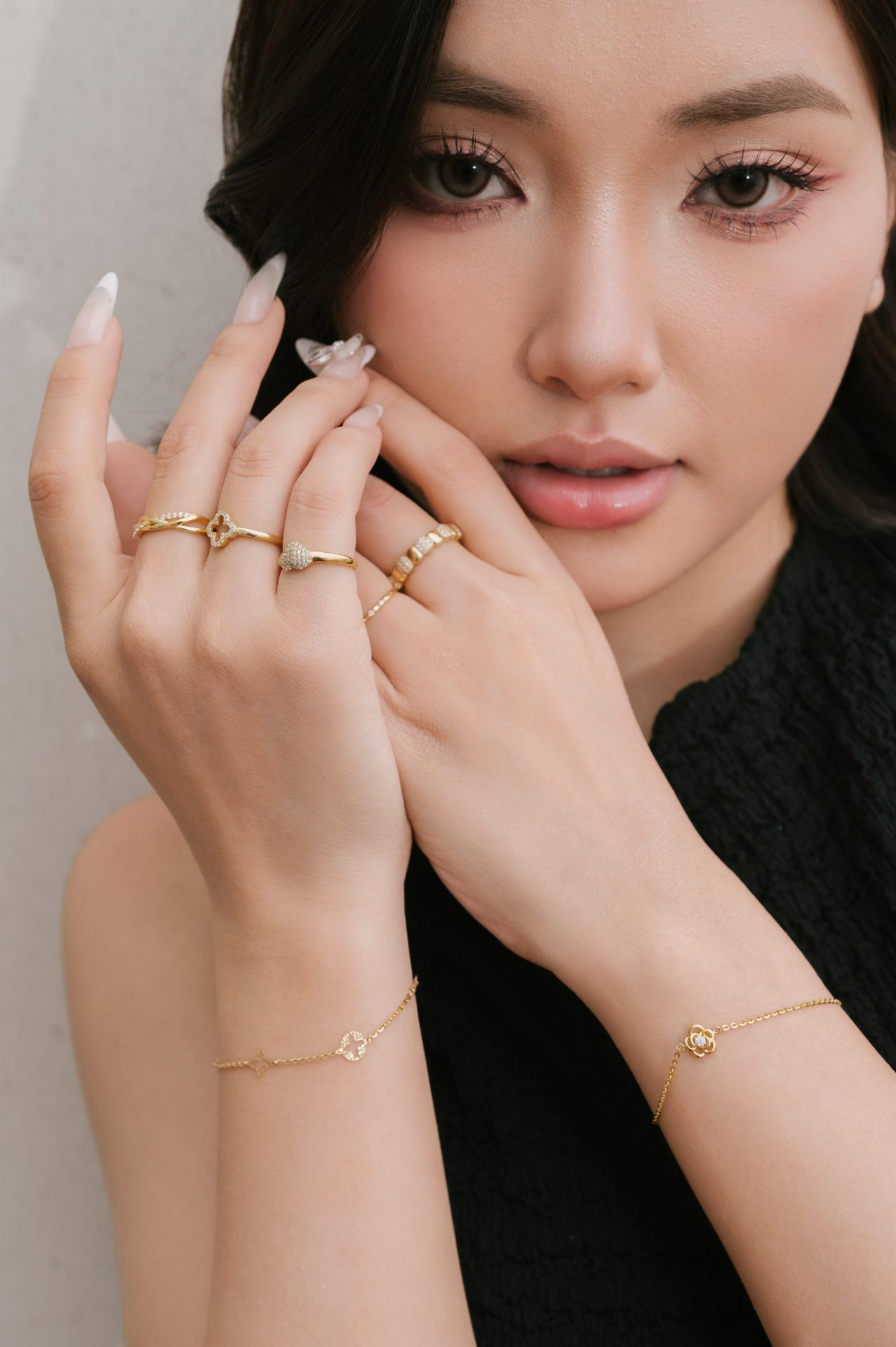 Set trang sức vàng của Kim Suri hòa cùng thần thái cuốn hút và nét dịu dàng của diễn viên Việt Hoa, tạo nên những khung hình vô cùng rạng rỡ và ngọt ngào.