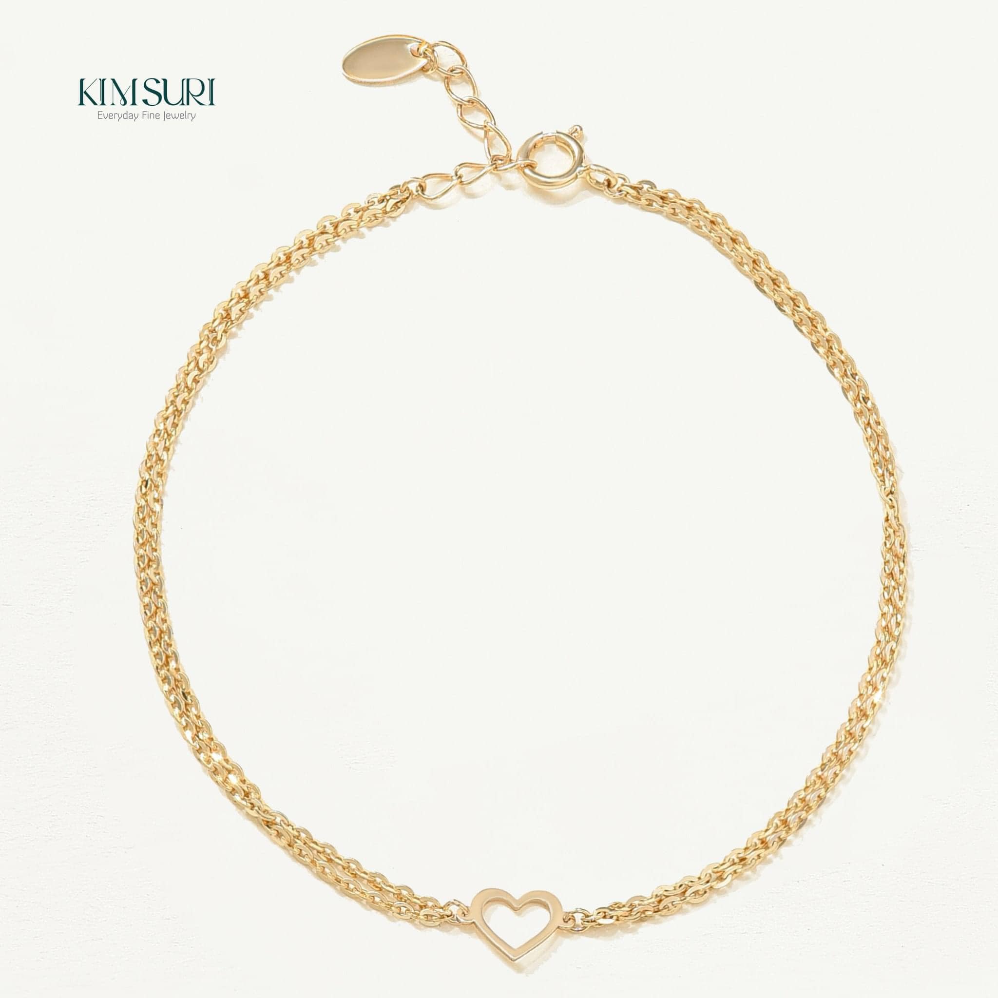 Lắc tay vàng 10k tim dây đôi là lựa chọn hoàn hảo dành cho những ai yêu thích vẻ đẹp thanh lịch, bền bỉ nhưng vẫn giữ được nét sang trọng và cuốn hút riêng. Với tỉ lệ vàng nguyên chất 41,7%, kết hợp cùng các kim loại cao cấp như bạc, đồng hoặc kẽm, vàng 10K có độ cứng và độ bóng lý tưởng – giúp chế tác nên những chiếc lắc tay tinh xảo, sắc nét mà giá thành lại dễ tiếp cận. US English