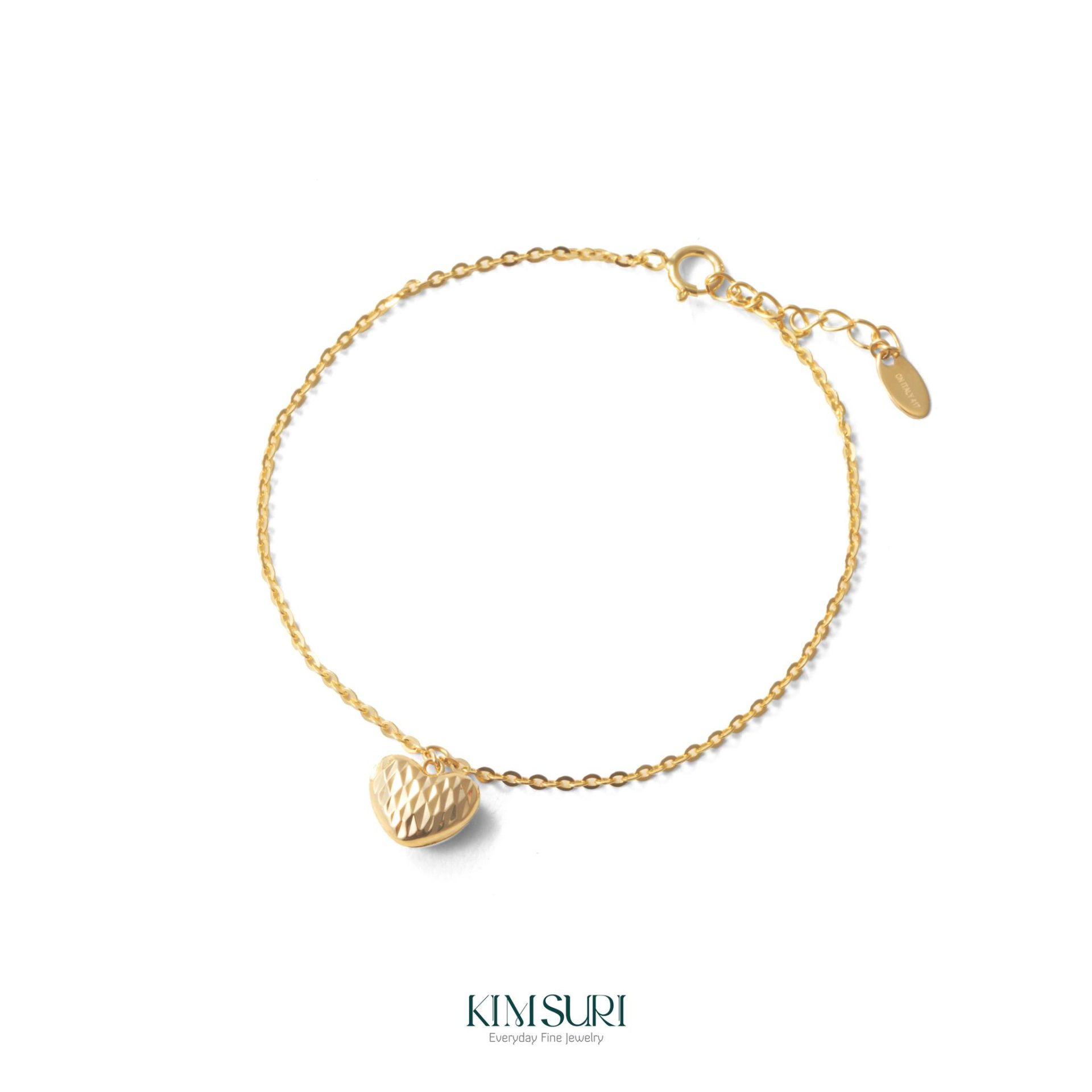 Lắc tay vàng 10K tim rơi là lựa chọn hoàn hảo dành cho những ai yêu thích vẻ đẹp thanh lịch, bền bỉ nhưng vẫn giữ được nét sang trọng và cuốn hút riêng. Với tỉ lệ vàng nguyên chất 41,7%, kết hợp cùng các kim loại cao cấp như bạc, đồng hoặc kẽm, vàng 10K có độ cứng và độ bóng lý tưởng – giúp chế tác nên những chiếc lắc tay tinh xảo, sắc nét mà giá thành lại dễ tiếp cận.